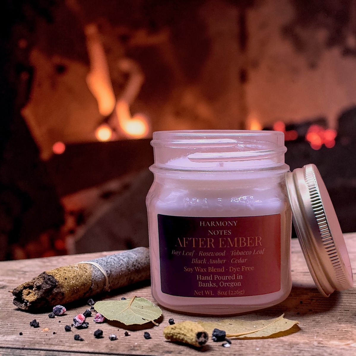 Warm, smoky, and deeply comforting, After Ember captures the lingering glow of a quiet fire after the flames settle. Rich woods, soft tobacco leaf, and warm amber blend together to create a bold yet inviting fragrance that feels cozy, grounded, and quietly sophisticated.